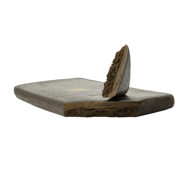 The plants which are used for Hash production are very small and bushy Indicas. In Afghanistan Hashish is pressed by hand after the addition of a small quantity of tea or water. The Hashish is worked on until it becomes highly elastic and has a strong aromatic smell. In Afghanistan, the product is stored in the form of Hash-Balls (because a round ball has the least contact with air), however, before being shipped, the Hash is pressed tightly in 100g slabs generally. Good qualities of Afghani are signed with the stem of the producing family, in this case it would be “The Apple”.