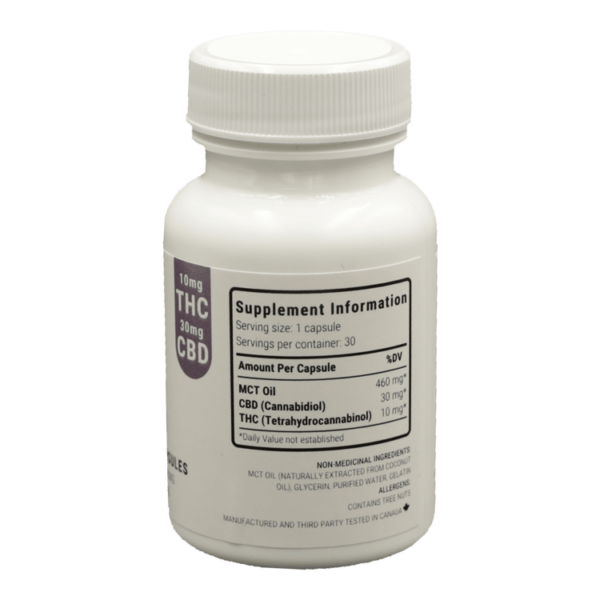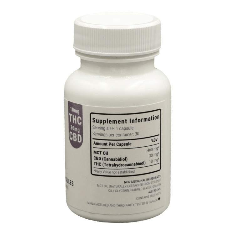 THC/CBD Capsules – 10mg (THC)/ 30mg (CBD) | BC Weed Edible Canada